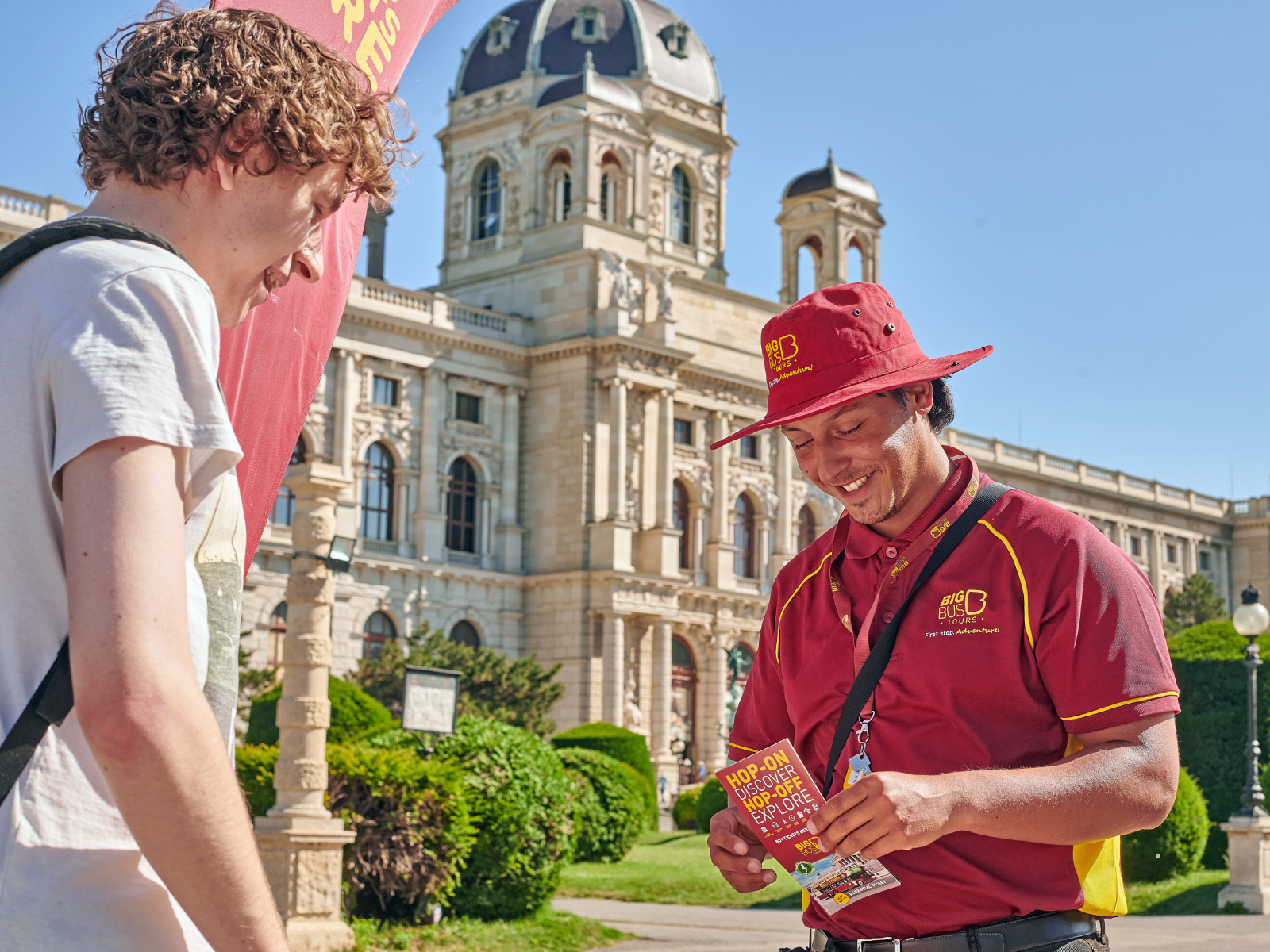 The first tour departs at 09:30 from Stop 1 (Opera/Walfischgasse), with buses running every 30 minutes until around 17:00 (16:00 in winter). You can start or redeem your ticket at any of the 20+ Big Bus stops across Vienna.